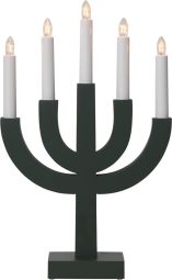 Grafit grå träljusstake med 5 ljuskällor och guldmålad dekoration, lätt att placera och skapar en härlig julstämmning både i fönster och inne i rummet på tex en hylla eller skänk.