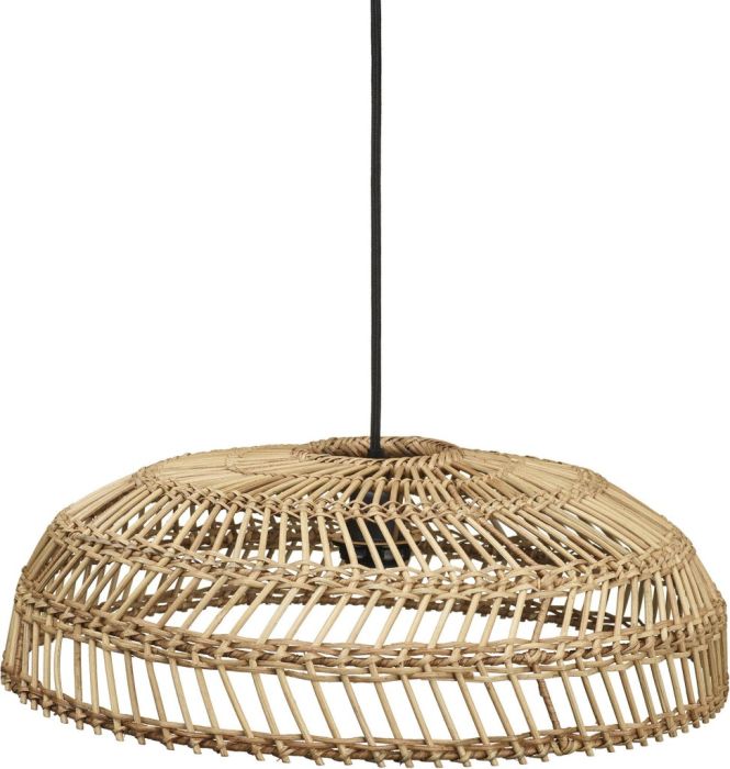 Charmig taklampa som är handgjord i flätad naturrotting. Då den är tillverkad i naturmaterial, kan det förekomma mindre storleksavvikelser samt att färgen kan förändras över tid. Taklampan kan användas utomhus, men då helst under tak eller på en skyddad uteplats då materialet kan påverkas av olika väderförhållanden. Svart sladdupphäng för utomhusbruk ingår, sladden är 2,5 meter lång och har ett E27 fäste. Använd ljuskälla E27 max 40W som är anpassad för utomhusbruk. Ljuskälla köpes separat.