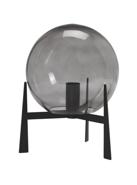 Modern och trendig Bordslampa med rund glaskupa (diam 20cm) och svart fot. Svart textilsladd. En riktigt fin inredningsdetalj i ditt hem. Denna lampan ingår i vår serie Milla som består av tak, fönster, bord och Golvlampa.