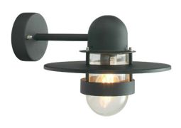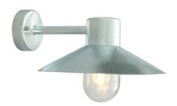 Stilren och modern vägglampa för utomhusbruk. Godkänd för väder och vind. Bra belysning med och fin spridning av ljuset. Färg: Galvaniserad.