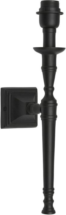 Vägglampa i en klassisk och elegant design. Vägglampan är i metall med matt svart finish. En design som håller över tid. Ingår i serien Salong. Svart 1,5m svart plastsladd med strömbrytare ca 30cm från lampa. Höjd 45cm, bredd 9cm och djup/väggavstånd 16cm. E27 sockel. Max 40W. IP20. Ljuskälla ingår ej. Passar med en skärm som har 17-20cm i diameter.