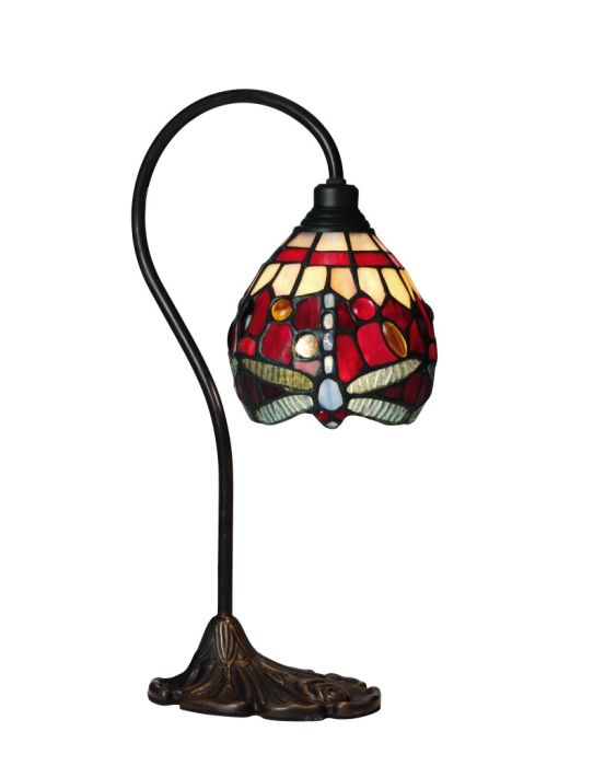 Denna Tiffany lampa har en glasskärm i färgerna vinröd, rosa, cognac.