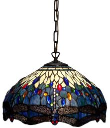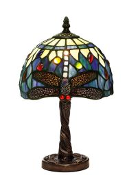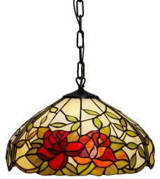 Denna Tiffany lampa har en glasskärm i färgerna olivgrön, brun, cognac, beige, röd.